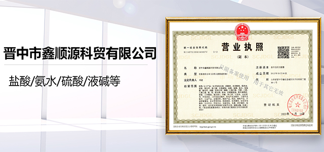 晉中市鑫順源科貿(mào)有限公司成立于2012年9月4日,有安監(jiān)局頒發(fā)的中華人民共和國(guó)危險(xiǎn)化學(xué)品經(jīng)營(yíng)許可證和非藥品類(lèi)易制毒化學(xué)品經(jīng)營(yíng)備案證明,主要經(jīng)營(yíng)鹽酸、氨水、液堿 、硫酸、次氯酸鈉 、 片堿 、純堿 、聚合氯化鋁、氯化鈣、氯化鋇、氯乙酸、氨水、水處理劑等危險(xiǎn)化學(xué)品的銷(xiāo)售及運(yùn)輸。...